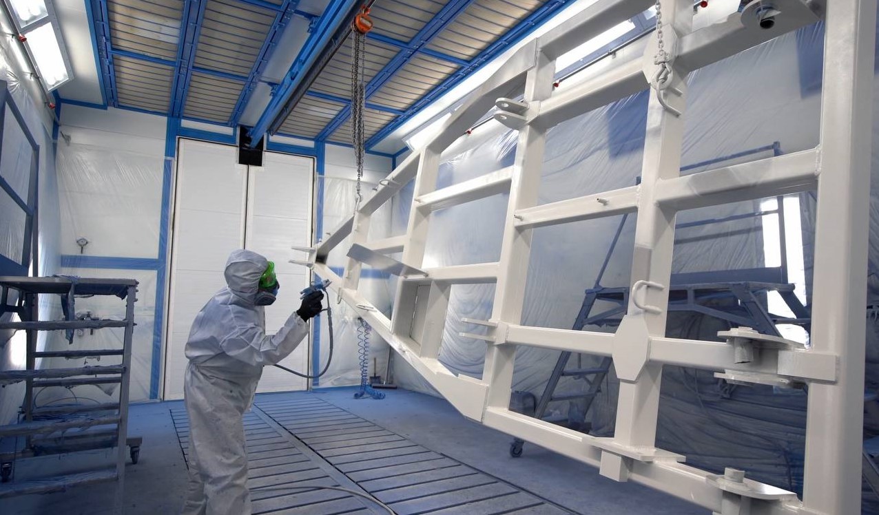 Авиация: гигантская окрасочная камера для авиации. Она уникальна тем, что сочетает в себе элементы зоны открытой окраски - 77 ламинарных сопел обеспечивают воздухообмен внутри покрасочного комплекса, а 5 вентиляционных агрегатов мощностью 500 000 м³/час отвечают за вытяжку воздуха.