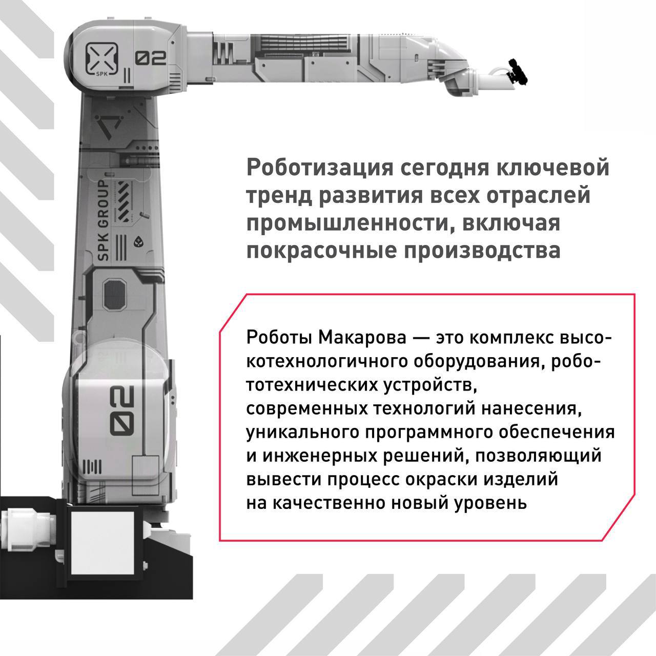 Роботы Макарова - это комплекс высокотехнологичного оборудования, робототехнических устройств, современных технологий нанесения, уникального программного обеспечения и инженерных решений, позволяющий вывести процесс окраски изделий на качественно новый уровень.