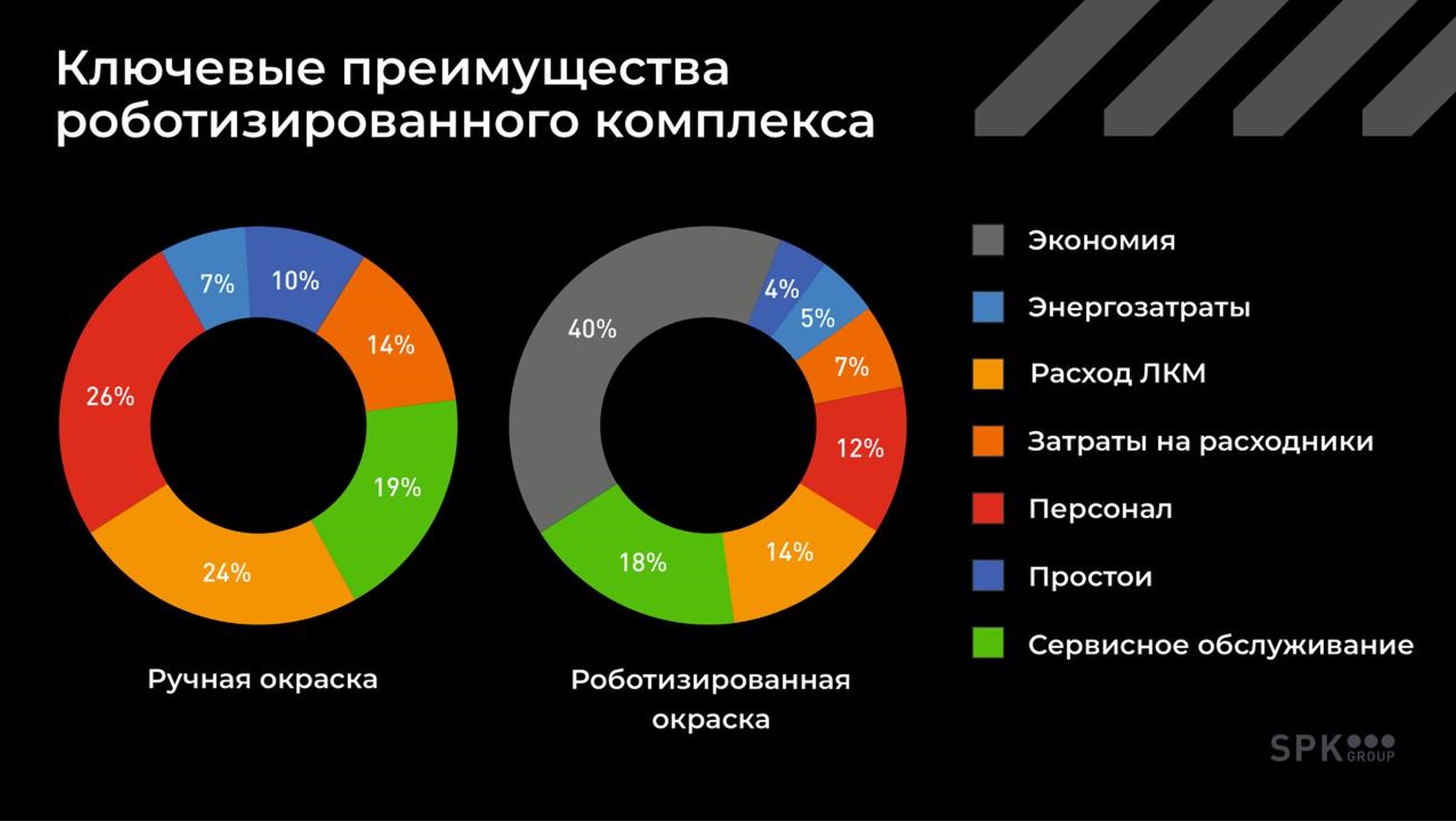 К примеру, комплекс оборудования для идеального покрытия включает в себя дробеструйную и окрасочно-сушильную камеры, транспортную систему для перемещения изделий, окрасочных роботов, автоматизированное краскоприготовительное отделение и централизованную систему управления окрасочным комплексом. Александр также рассказал слушателям о технологии цифрового двойника процесса и особое внимание уделил преимуществам роботизированного комплекса. Одно из главных для предприятий - 40 % экономии ресурсов при роботизированной окраске по сравнению с ручной.