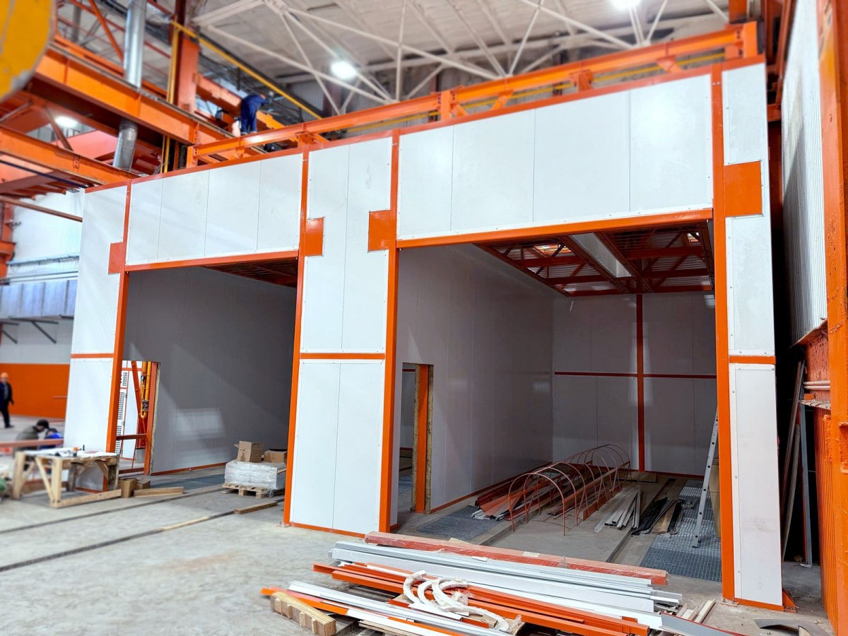 На Челябинском механическом заводе в процессе строительства новая очередь окрасочно-сушильного комплекса. Она состоит из 3-х окрасочно-сушильных камер и одной дробеструйной, а также напольного конвейера для транспортировки изделий. Обработку и покраску в них будут проходить главные продукты завода - автомобильные, гусеничные и специальные краны.