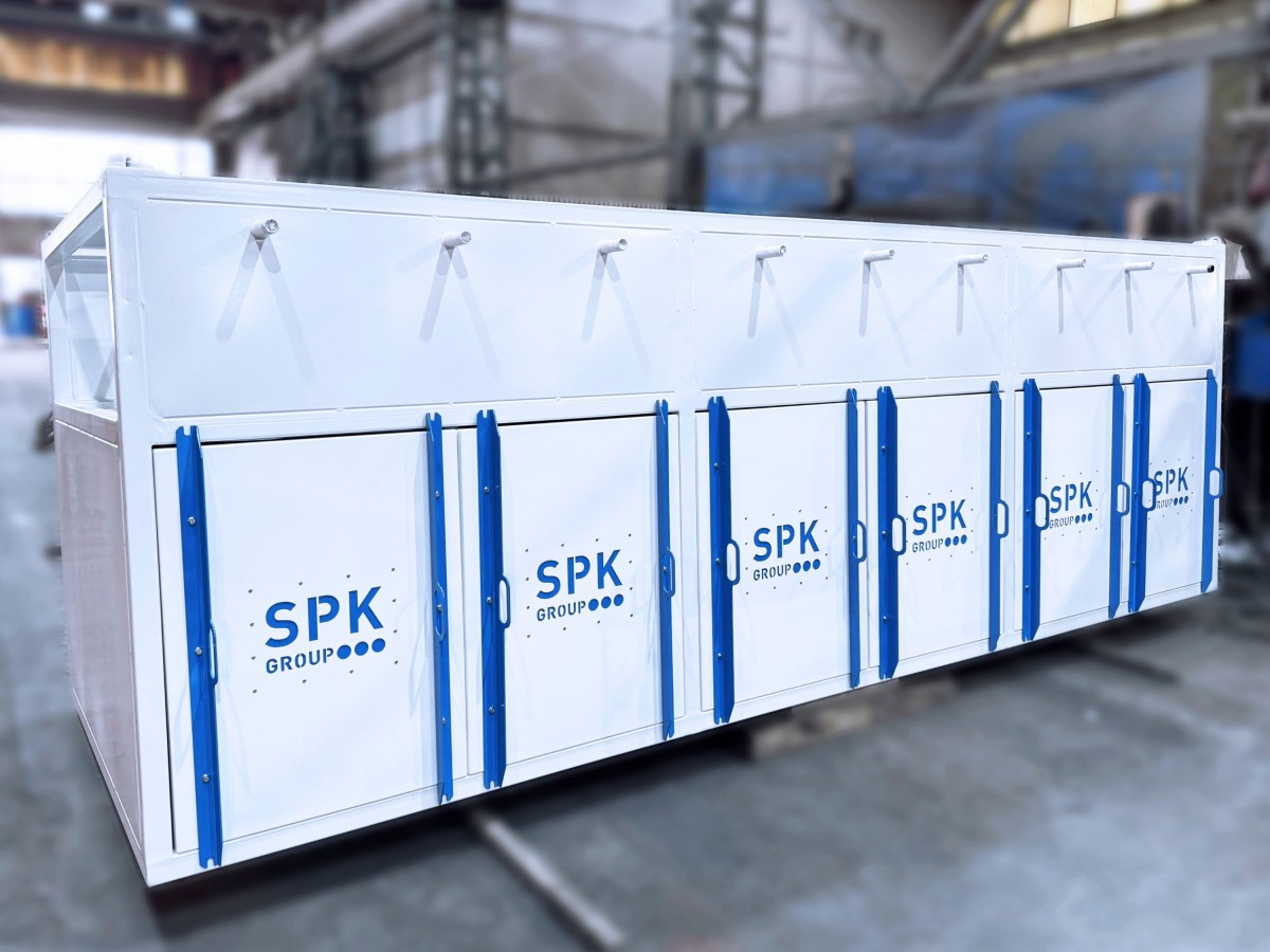 ВФУ работает на соленоидных клапанах с ресиверами, сбрасывая накопившуюся пыль с фильтров без остановки процесса. Особенность конструкции — интеграция систем пассивной противопожарной защиты.