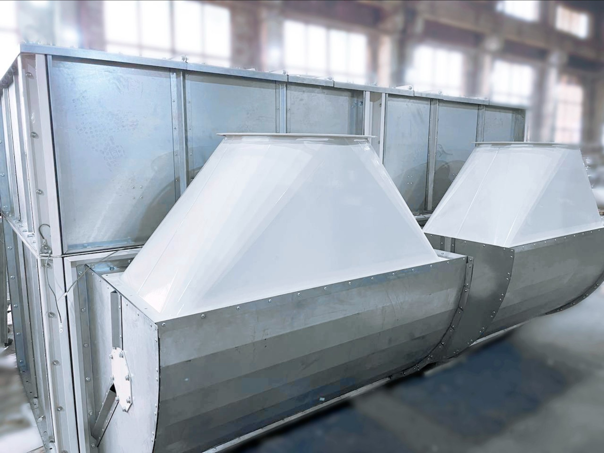 В производстве на заводе группы компаний СПК | SPK GROUP вентиляционно-фильтровальные установки (ВФУ). Они предназначены для эффективной очистки воздуха в процессах абразивной обработки.