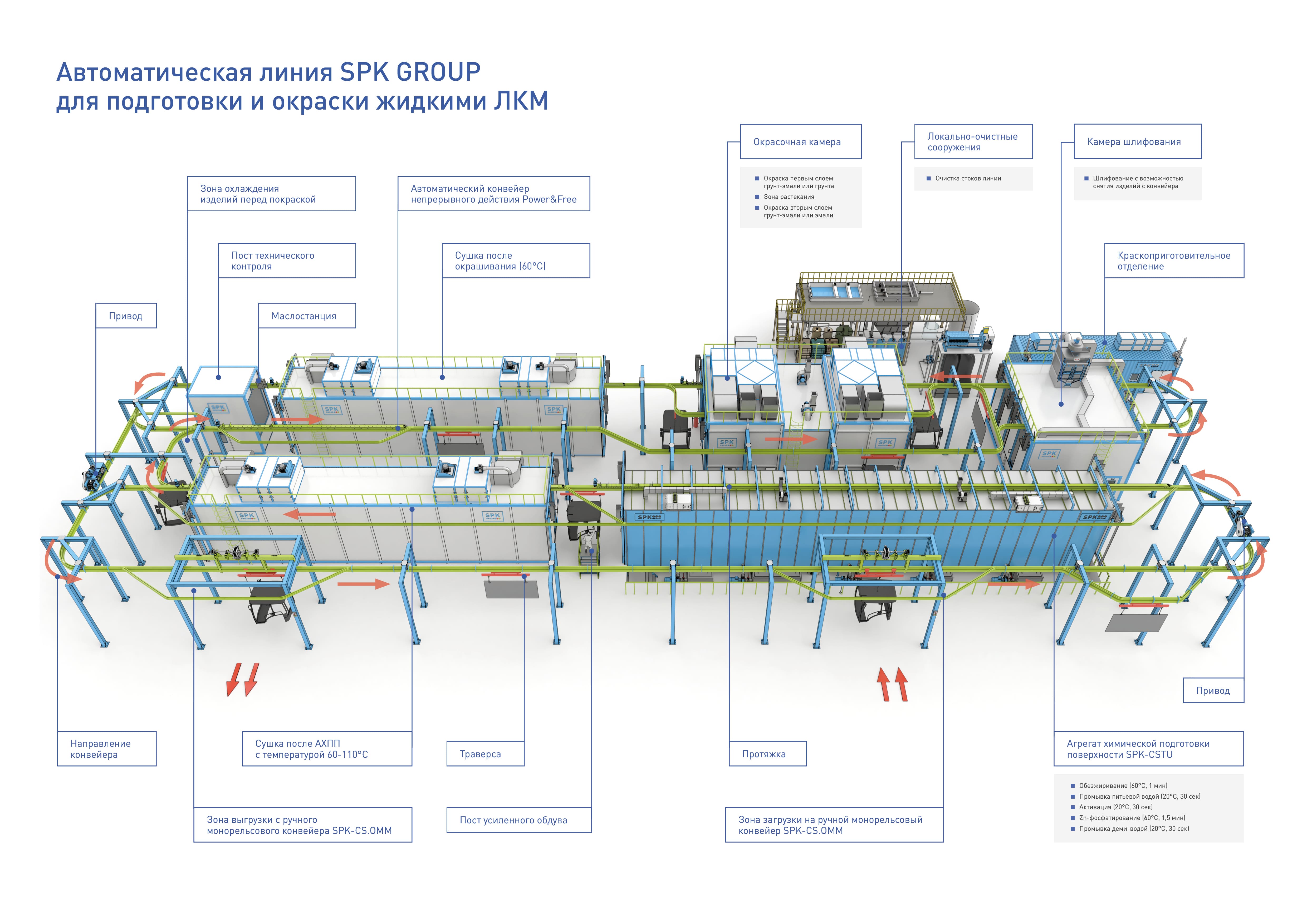 Конвейерные покрасочные линии SPK – это комплекс оборудования, который используется для качественной подготовки и окраски поверхностей изделий разной номенклатуры, способный интегрироваться во все отрасли промышленности, такие как металлообрабатывающая, сельскохозяйственная, нефтегазовая, авиационная, машиностроительная и судостроительная.