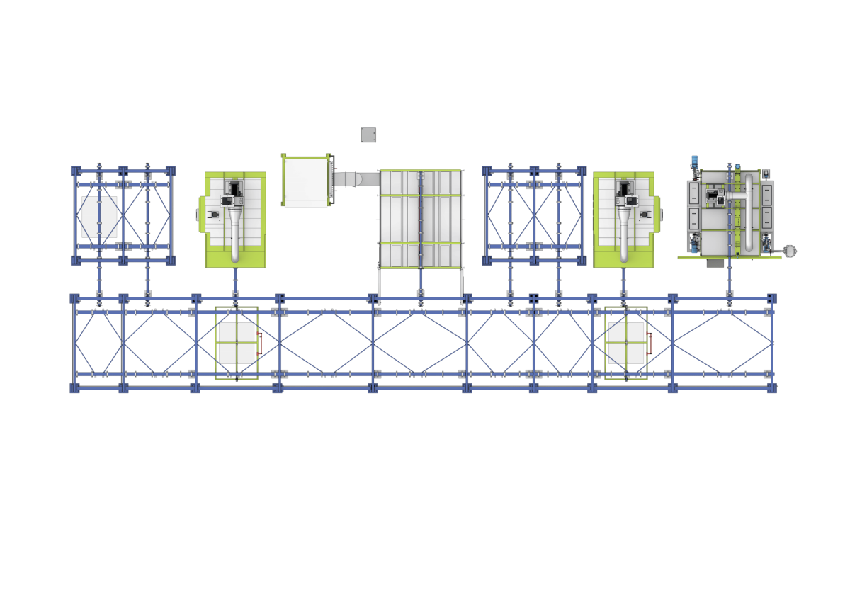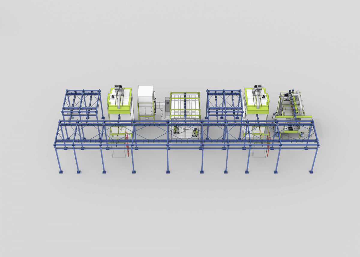 Общий рабочий процесс: Изделия последовательно подвергаются окрасочным операциям на транспортной системе. После обработки они накапливаются перед камерой полимеризации, проходят нагрев и полимеризацию в печи, а затем выкатываются в зону охлаждения и выгрузки. Каретки транспортного оборудования оборудованы системами фиксации рельс. Размеры транспортной подвесной системы будут уточнены в процессе проектирования и размещения оборудования.
