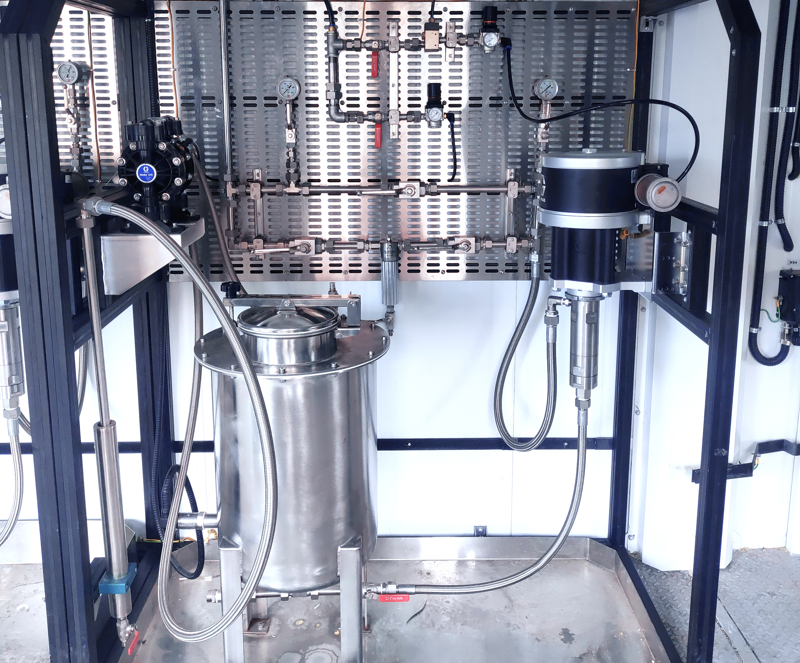 Подает отвердители 2К/3К ЛКМ на системы дозирования. Исключает полимеризацию отвердителя в пределах всего срока жизнеспособности за счет герметичного исполнения емкостного. Минимизирует контакт отвердителя с воздухом за счет применения перекачивающего насоса. Продлевает «срок жизни» материала.