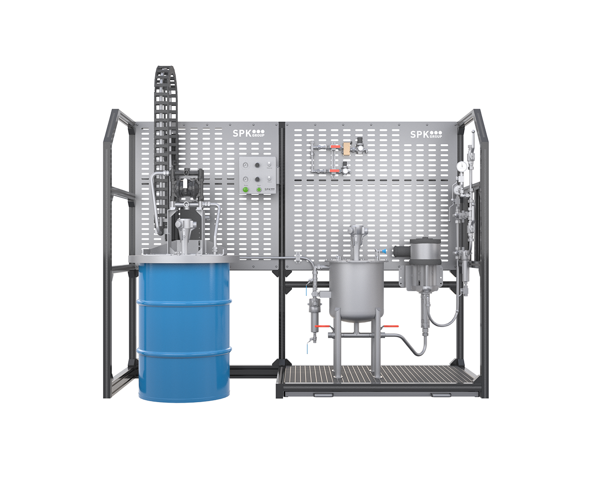 Комплекс обеспечивает поддержание гомогенного состояния в таре поставки и рабочей емкости и подает ЛКМ на окрасочные посты любого типа нанесения, распыления или на системы смешивания под давлением до 400 бар. Обеспечивает одновременную работу до 4-х окрасочных постов. Исключает остановы на подготовку ЛКМ и заполнение емкости новой партией материала. Позволяет отслеживать количество и расход материала.