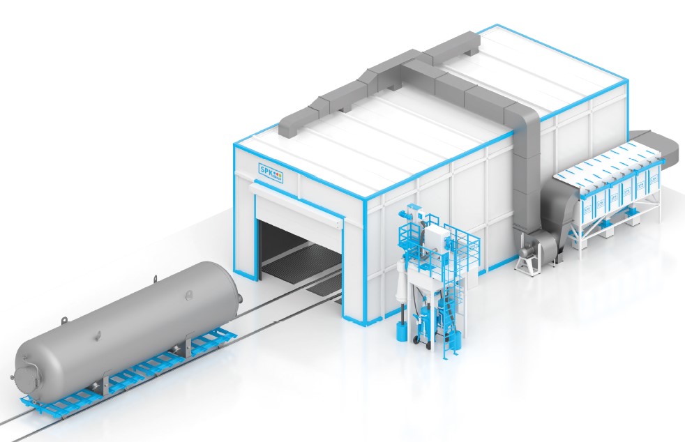 Дробеструйная камера обитаемая проходного типа SPK-SBB-15.7.5 предназначена для ручной струйной обработки различных поверхностей изделий и металлоконструкций абразивоструйным методом в целях избавления от окалины, ржавчины, различных лакокрасочных и гальванических покрытий, следов побежалости металла, наклепа и поверхностного упрочнения металлических поверхностей.