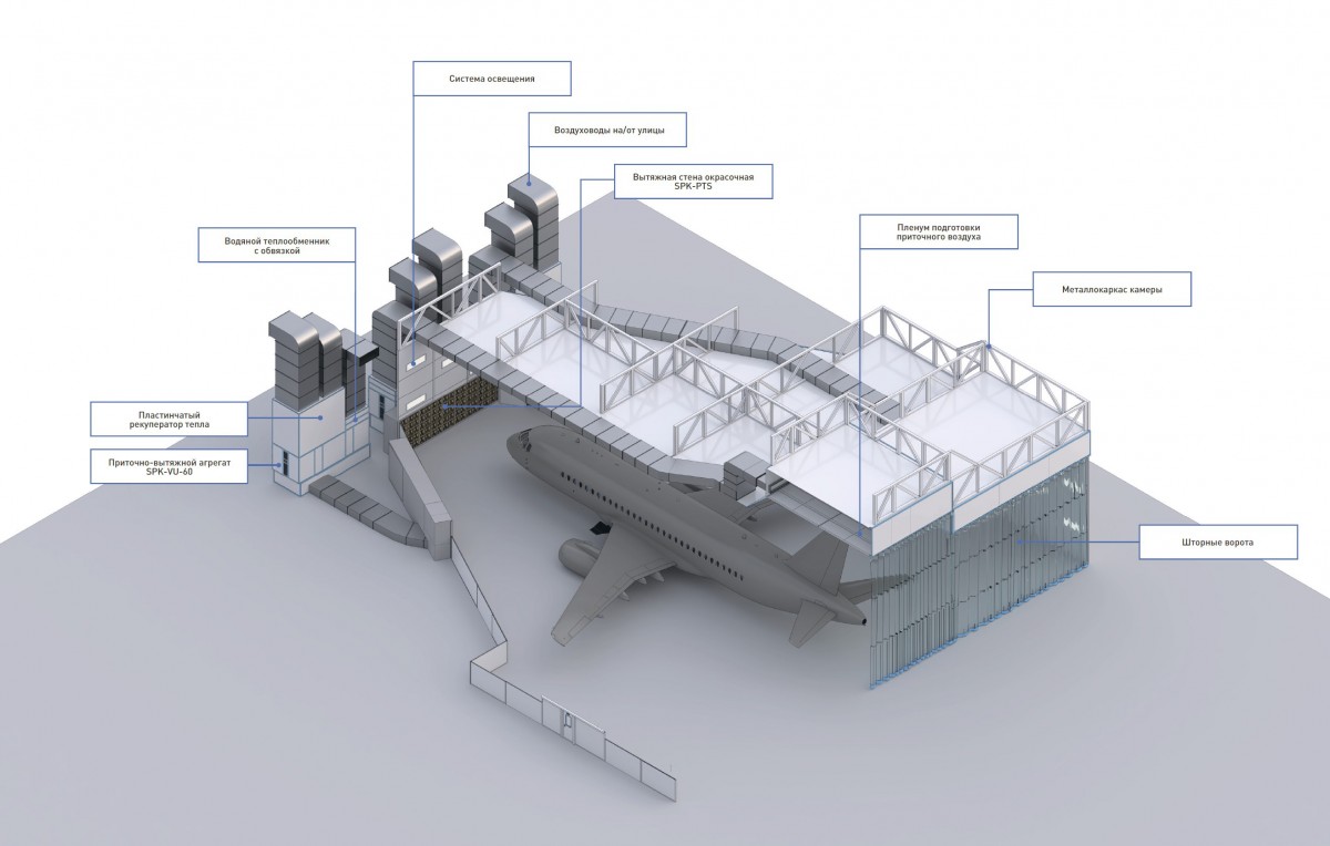 Размещение оборудования камеры окраски SРК предусмотрено в существующем ангаре, расположенном на территории аэропорта.