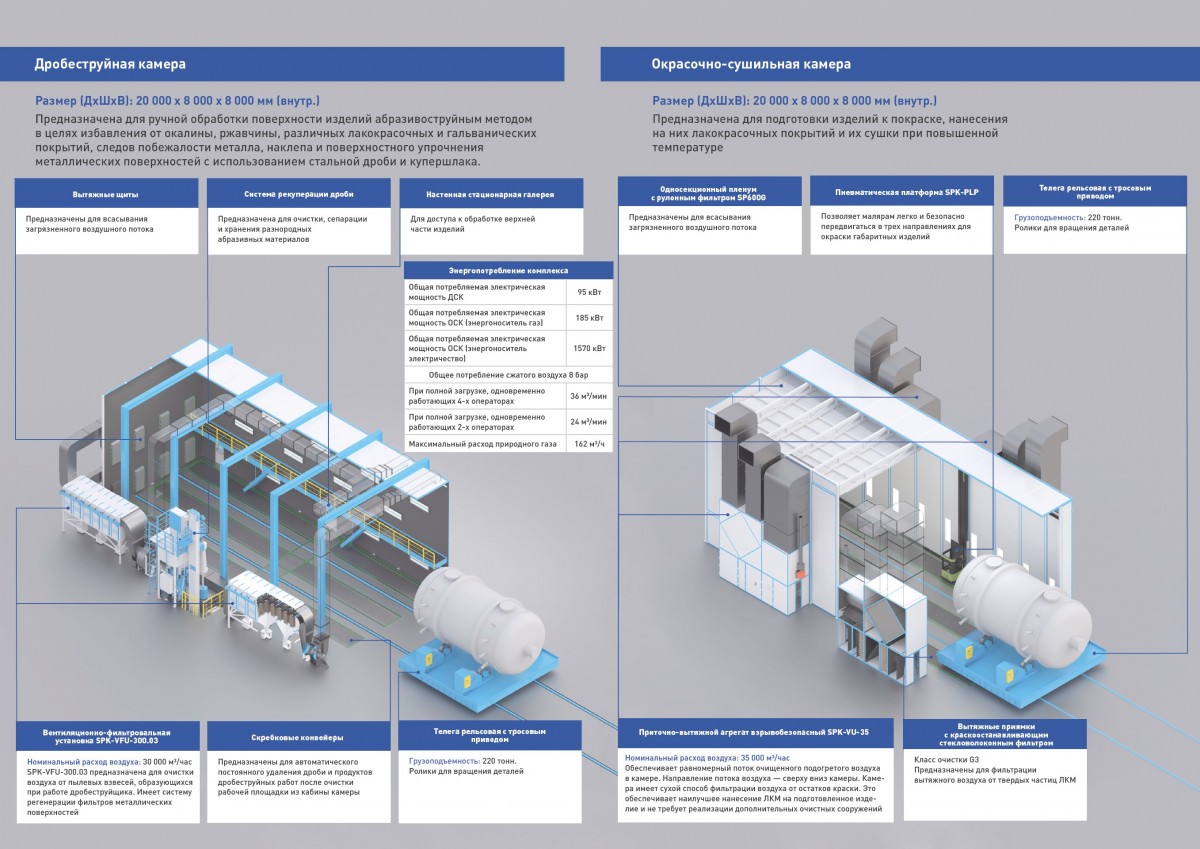 Назначение и комплектация окрасочно-сушильной камеры SPK-SCB-20.8.8