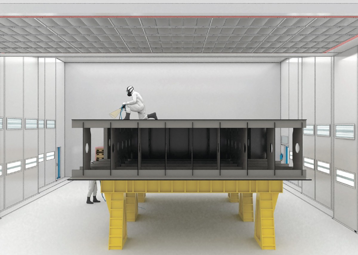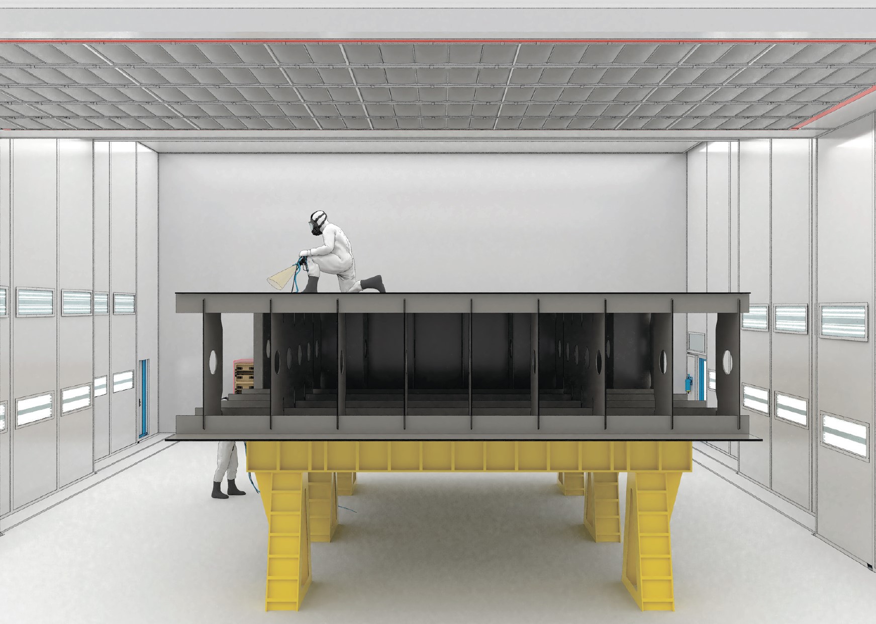 Камера предназначена для обработки судовых блоков с максимальными габаритами до 10000х8000х1500 мм, весом до 10 т.