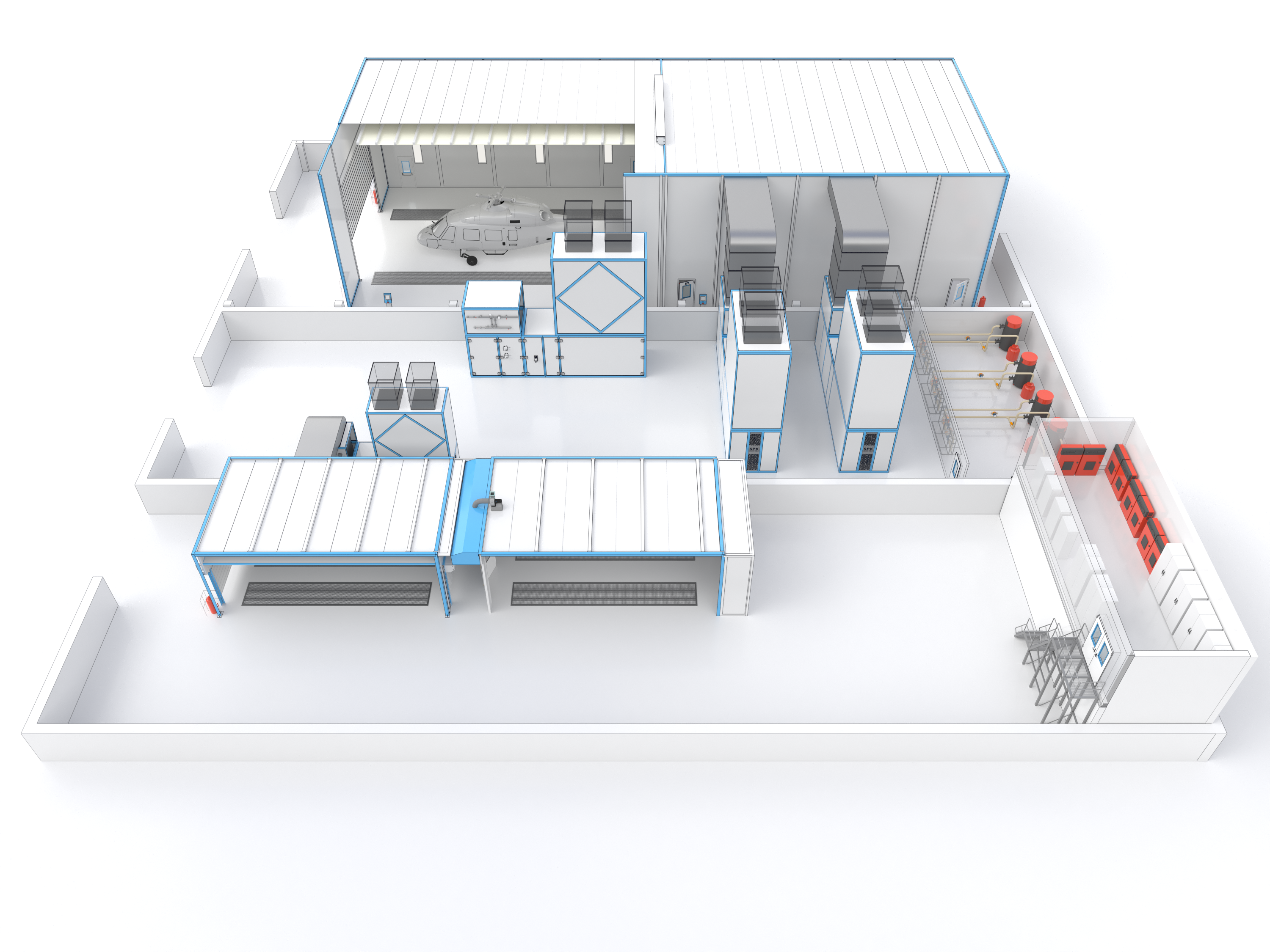 Присоединена к окрасочно-сушильной камере SPK-SCB-9.5.3 через вентилируемый тамбур с воздушной завесой.