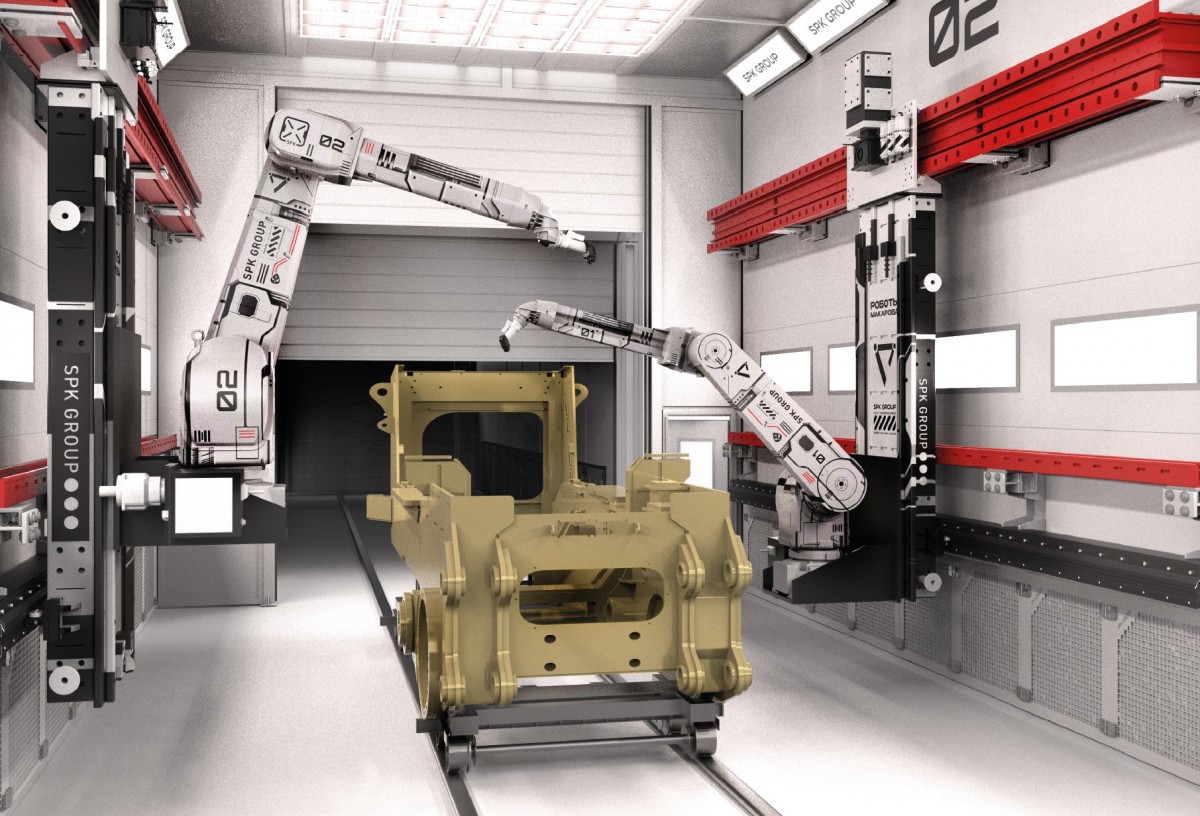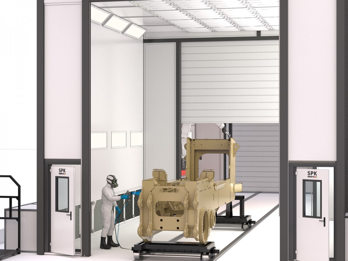 Дверь в секцию с роботом оснащена замком безопасности и датчиками, останавливающими процесс окраски и работу робота при открытии.