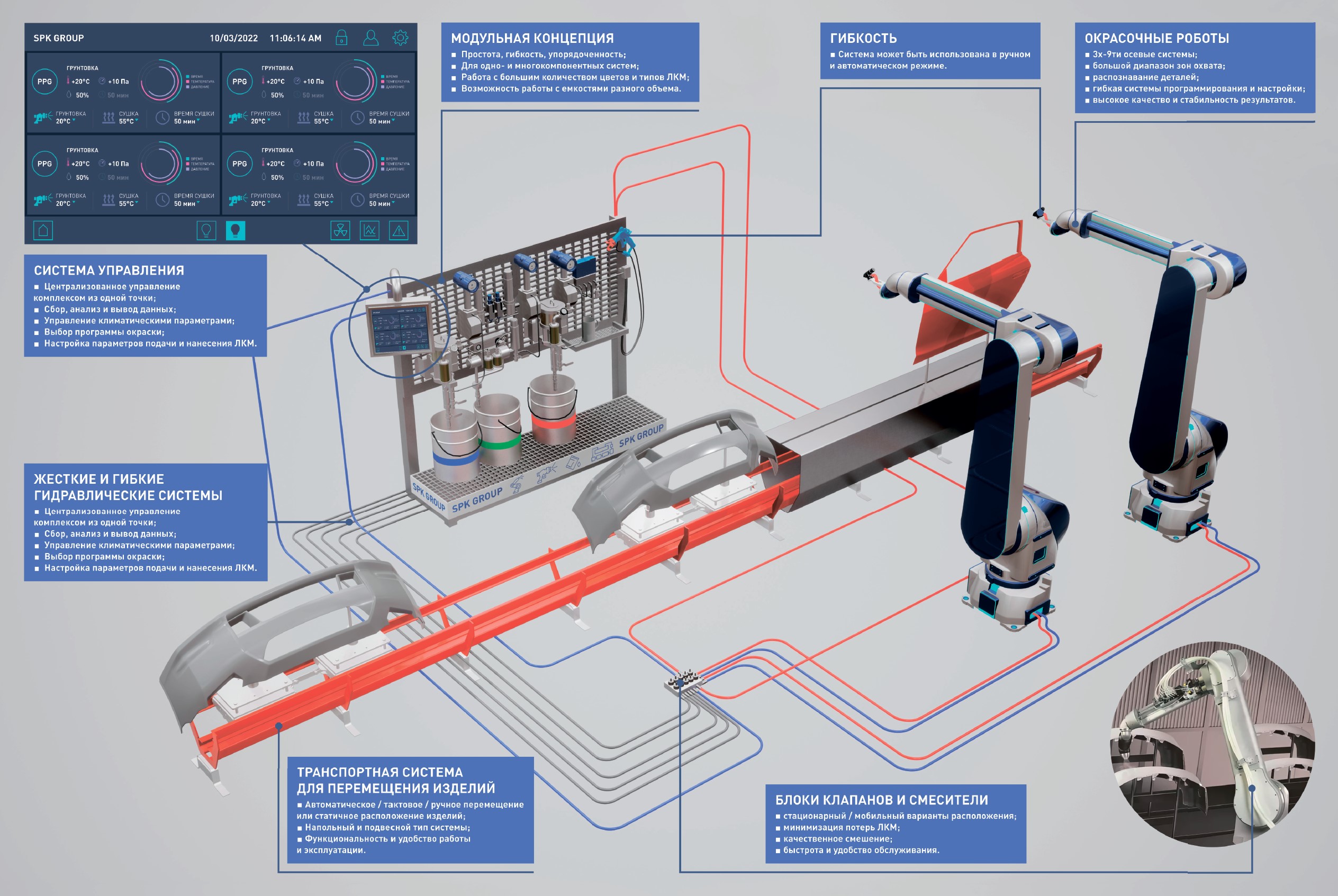SPK GROUP занимается разработкой систем подготовки, подачи, дозирования и нанесения ЛКМ для автоматических и для ручных способов нанесения. Оставить свой запрос, скачать опросный лист и ознакомиться с более подробной информацией можно на странице «Производство систем подачи лакокрасочных материалов».