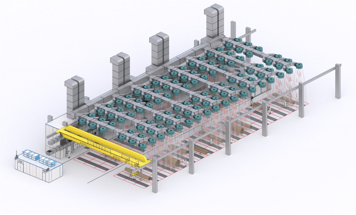 Основные характеристики Зоны открытой окраски заключаются в обеспечении безопасного окрашивания изделий на участке без дополнительных ограждений. Изделия располагаются под группой воздушных сопел, что позволяет выполнять окраску со всех сторон с комфортным проходом для персонала.