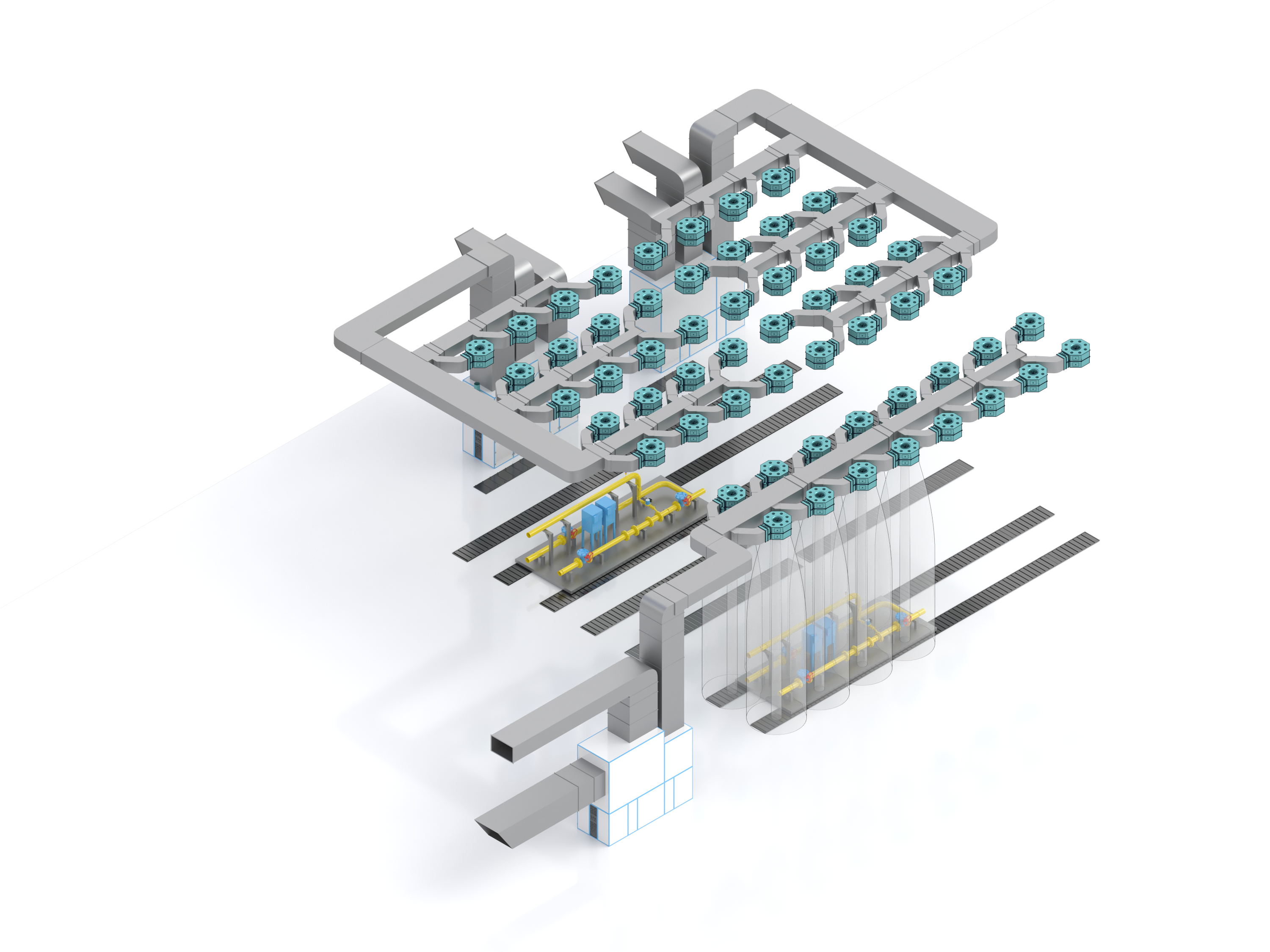Зона открытой окраски — это комплекс, состоящий из специализированного оборудования и технологической вентиляции, предназначенный для выполнения окрасочных работ, в существующем или вновь возводимом цеховом пространстве. При этом не требуется возведение дополнительных ограждающих конструкций и создание дополнительной транспортной системы.