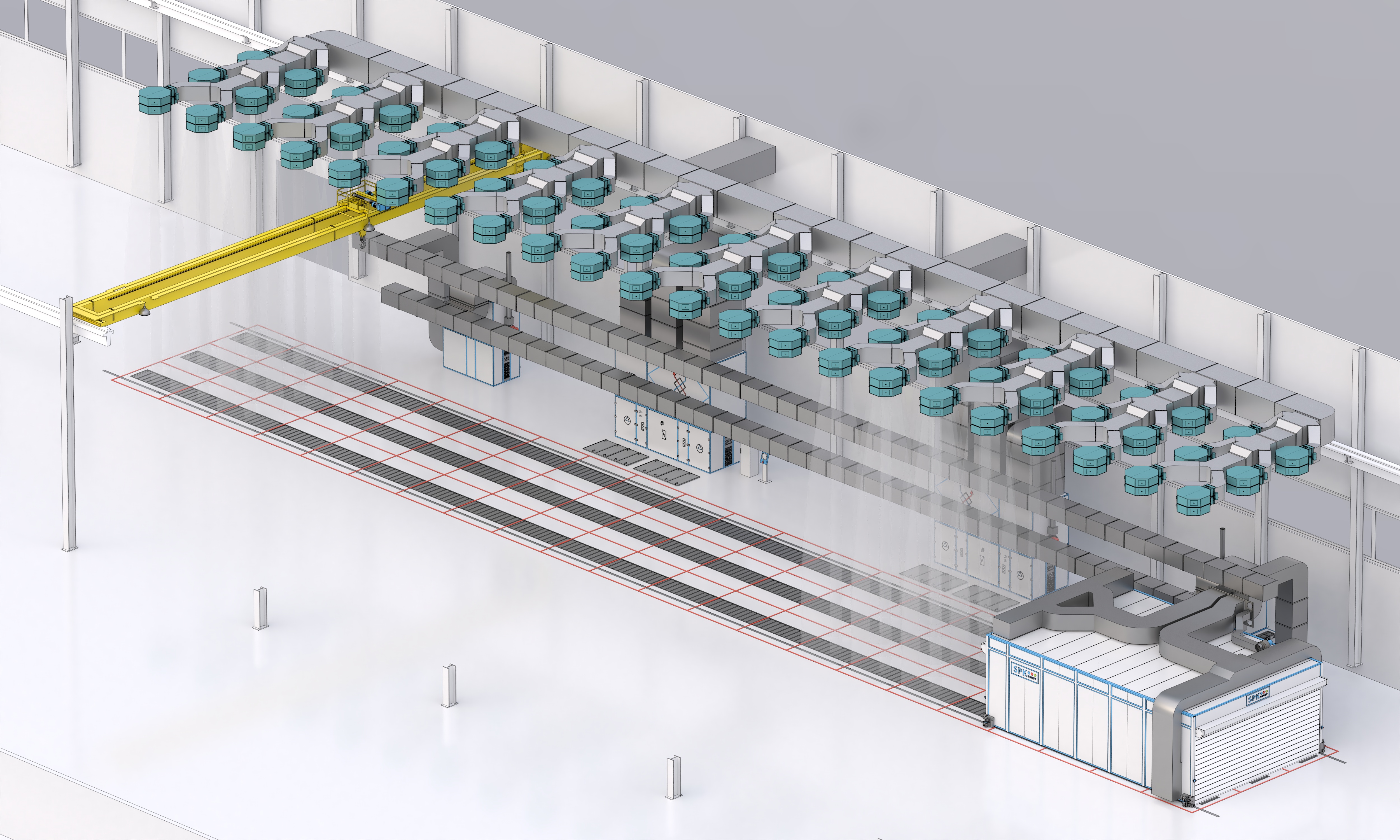 Зона открытой окраски — это комплекс, состоящий из специализированного оборудования и технологической вентиляции, предназначенный для выполнения окрасочных работ, в существующем или вновь возводимом цеховом пространстве. При этом не требуется возведение дополнительных ограждающих конструкций и создание дополнительной транспортной системы.